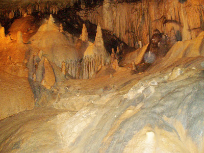 for 70 minutes, it is over 1 mile long. The Crystal Palace Tour is only 30 minutes long. At the end of the tour, you get to see a video about the cave's discovery. Again, we were lucky to be the only 2 tourists for the Drip Stone Tour. There were 6 other people with us for the Crystal Palace Tour.